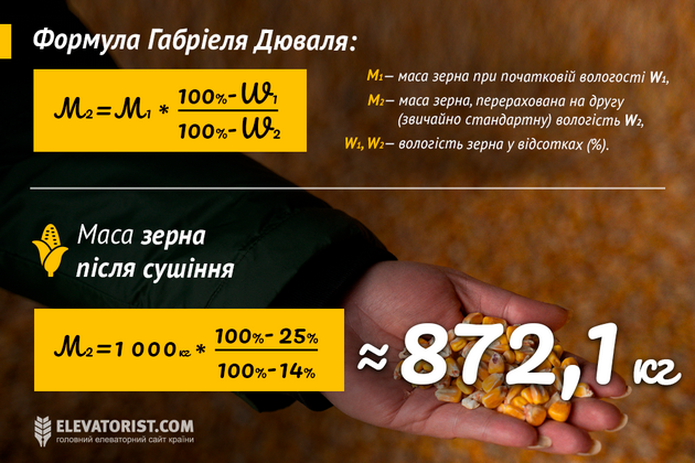 Як точно розрахувати масу зерна при зміні вологості під час сушіння — формула Габріеля Дюваля