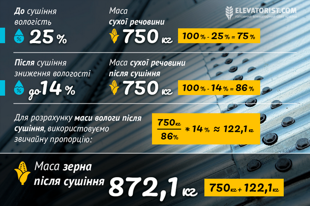 Принцип простий: суха маса у зерні залишається сталою, а от частка вологи змінюється. Коли вода випаровується — зменшується і загальна маса партії.