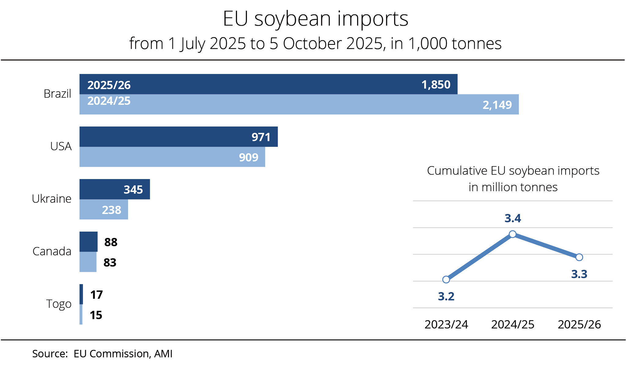 Імпорт сої із США зріс на 7% — до 970,7 тис. т, а їхня частка в загальному обсязі поставок досягла 29,6%. Збільшення імпорту також зафіксовано з Канади та Того, хоча в менших обсягах.