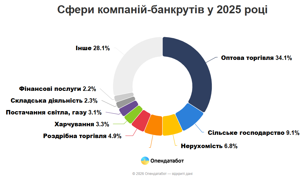 За рейтингом у 2025 році неплатоспроможними ставали компанії зі сфер: