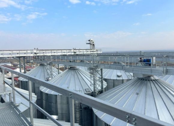 Зокрема, для зберігання пшениці встановили 9 конусних силосів із кутом 45°, кожен об’ємом 1 406 м³, діаметром 10 м і висотою 13 кілець. Вони забезпечують ефективне самопливне розвантаження та безперервну подачу сировини у виробництво.