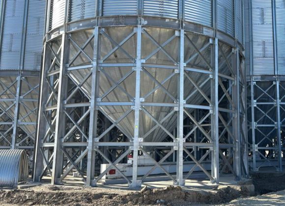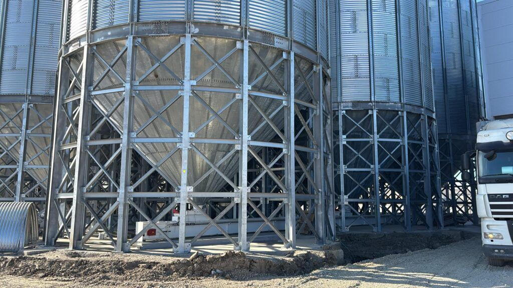 Окрім силосів, проєкт передбачає інфраструктуру для безпечної експлуатації — драбини, перехідні містки та несучі конструкції, розраховані на робочі навантаження.